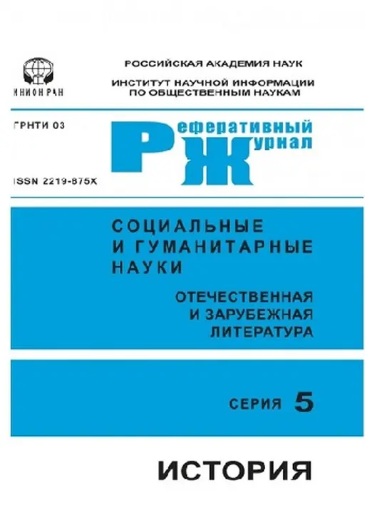 «СОЦИАЛЬНЫЕ И ГУМАНИТАРНЫЕ НАУКИ. ОТЕЧЕСТВЕННАЯ И ЗАРУБЕЖНАЯ ЛИТЕРАТУРА. СЕРИЯ 5: ИСТОРИЯ. РЕФЕРАТИВНЫЙ ЖУРНАЛ» — полное наименование.В реферативном журнале представлена научная информация о новейших работах отечественных и зарубежных учёных по всему диапазону исторических исследований – методологии истории, истории России, медиевистике, новой и новейшей истории стран Западной и Восточной Европы, Америки, международным отношениям, периоду Древнего мира, а также археологии и этнологии.